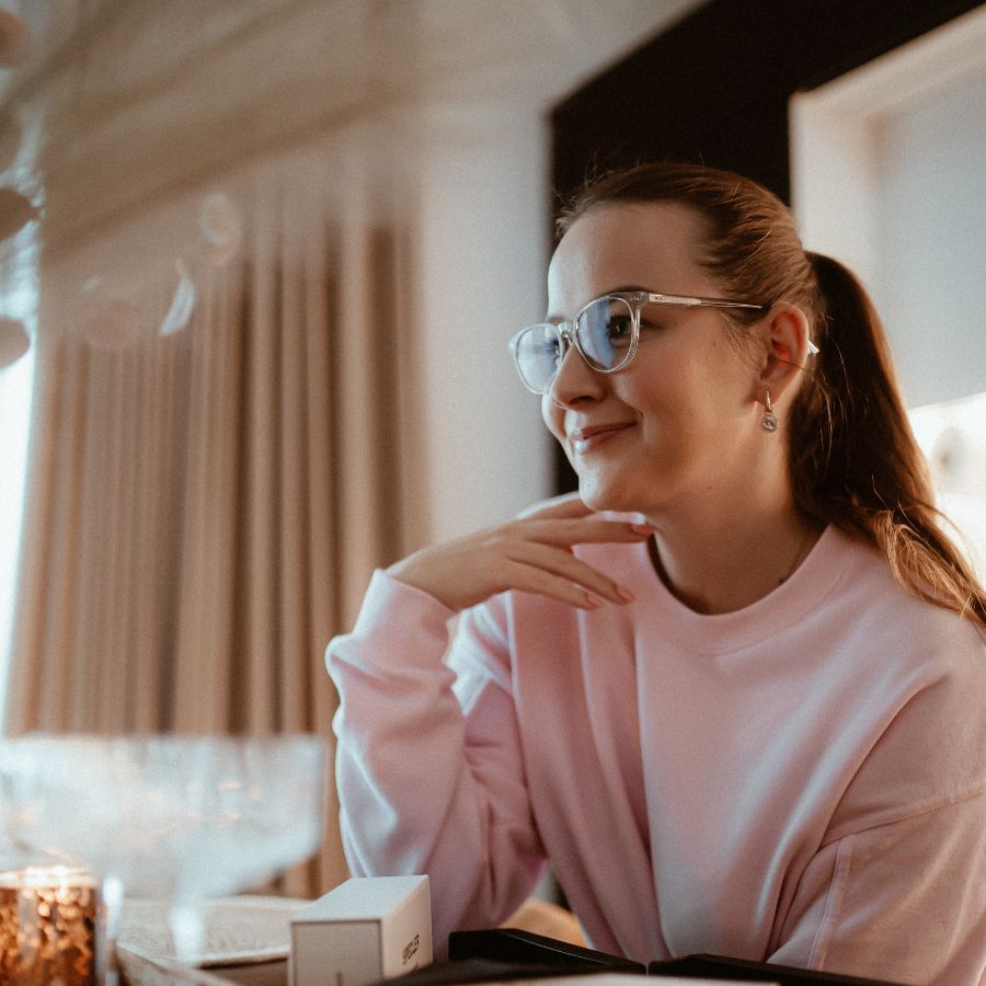 Blue light lenses have a special filter that reduces the blue light emitted by screens such as computers, phones, and TVs. This helps ease eye strain, dryness, and fatigue, especially after long hours in front of screens. You can add a blue light filter to prescription glasses, or choose non-prescription blue light glasses if you simply want extra eye protection.